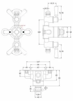 Bayswater Traditional Triple Exposed Shower Valve – Black & Chrome