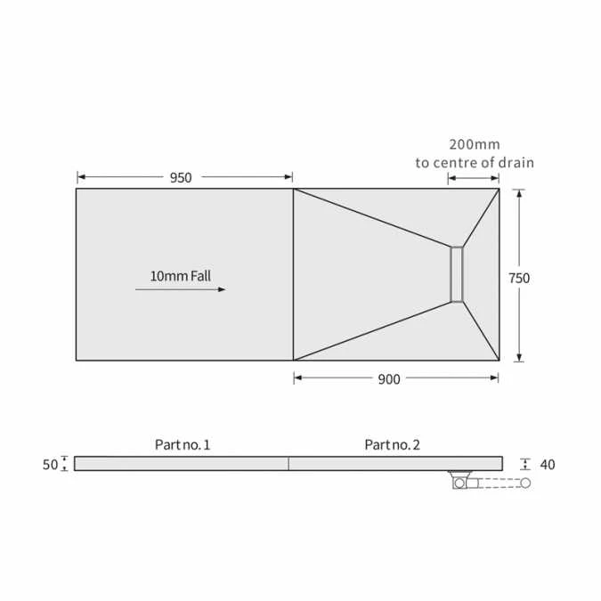 - 1 x 1850 x 760 x 50/40mm Shower Base & Linear Stainless Steel Waste