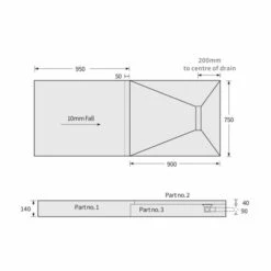 - Shower substrate – 750 x 950mm (50mm overlap with extension tray)