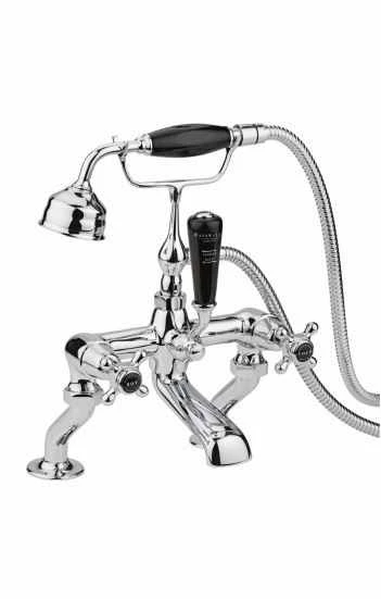 This Bayswater Traditional Bath Shower Mixer is designed to be deck mounted. This Bath Tap has the complete traditional look with its chrome finish, curved edges, dome collar and black detail.