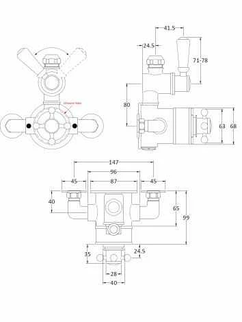 The Bayswater Traditional Valve is fitted with anti-scald technology to prevent scalding in case of a cold or hot water shut off. Twin Shower Valves supply water to 2 oulets, shower heads and/or a bath filler.