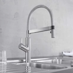 The Blanco Solenta – S is a semi professional kitchen tap packed with features. Complete with a pull down dual spray function with magnetic holder allowing an easy switch from an aerated stream to a powerful rinse spray. Finished in PVD Steel, a hard wearing, stain resistant easy clean surface