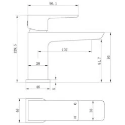 - Dimensions: H 129.5 x D 130 x W 46mm