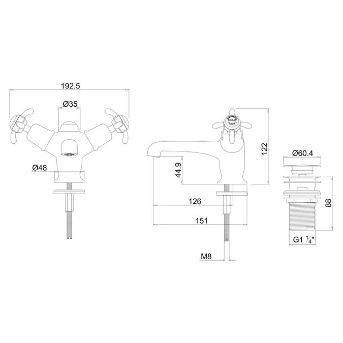 - Anglesey monobloc basin mixer tap: 170 x 159 x 150mm