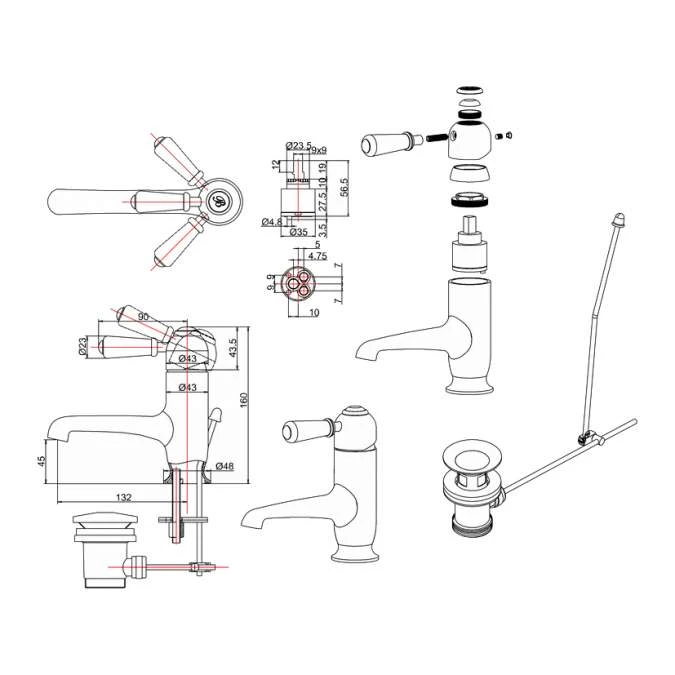 Burlington Basin & bidet mixers are available with a high central Burlington ceramic indices or a low central Burlington ceramic indices. These two combinations are supplied in the same box – so the consumer can make their choice in their home at the point of installation.