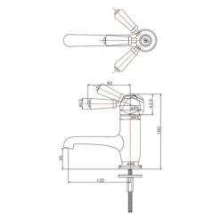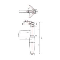 The Burlington bridge basin mixer enables you to have mixed hot and cold water, whilst retaining the traditional two tap hole configuration in the basin. It also has a swivel spout – you can swivel the spout and the water comes up vertically – so you have a water fountain (it also can make washing your hair in a basin easier!)