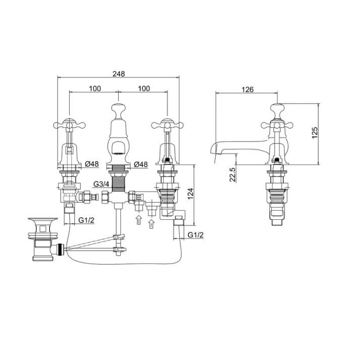 Burlington Claremont Traditional Thermostatic Three Hole Basin Mono Tap – Waste CL29