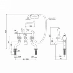 Burlington Claremont Bath/Shower Mixer Technical Details: