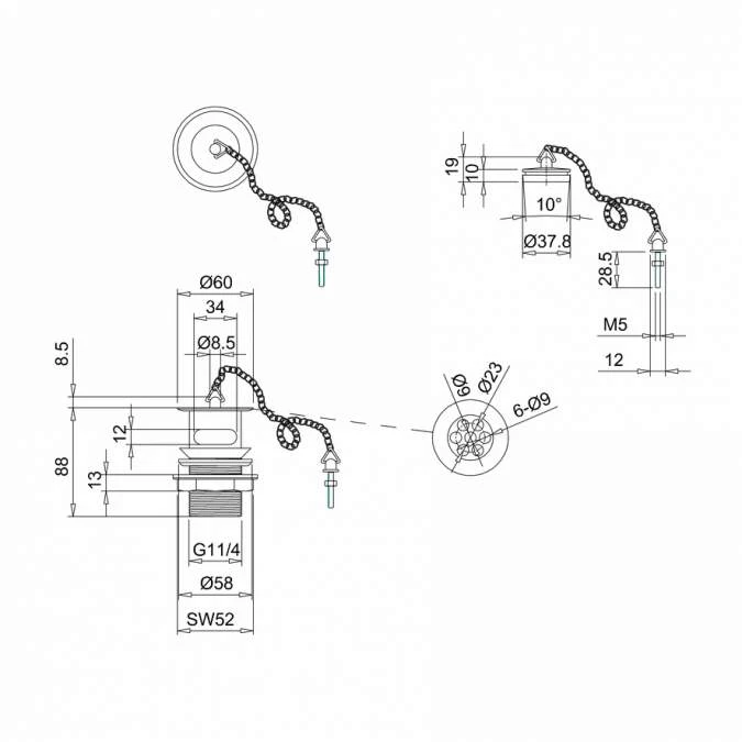 Burlington Basin Plug and Chain (slotted) – W1