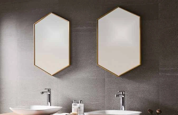 Brushed Brass 500 x 750mm Docklands Hexagonal Bathroom Mirror