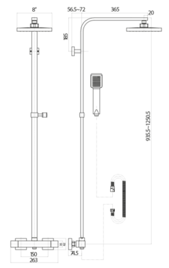 The Elliot Square Rigid Riser Shower is a dual head exposed bar mixer shower with an adjustable height ultra slim metal, not plastic, drench head and adjustable slinding hand set.