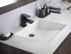 The Francis Pegler Manta Mini Monobloc Basin Mixer in matt black is a sleek tap with nice straight lines along with it’s brass body for a modern look. This uses a single lever ceramic disc, a flexible inlet and a click up waste.