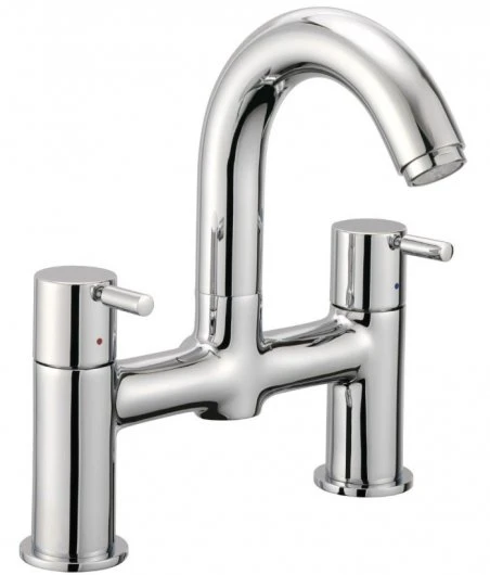 The Francis Pegler Visio Two Hole Leg Bath Filler is a chrome finish single unit tap with a spout in the centre of the unit and the two temperature controls on either side.