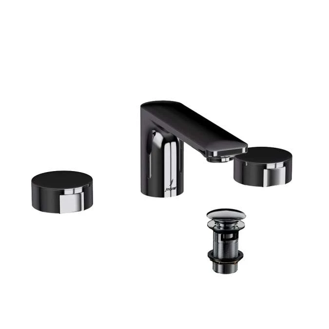 Laguna Black Chrome 3 Hole Basin Mixer with Round Handle Including Click Clack Waste by Jaquar
