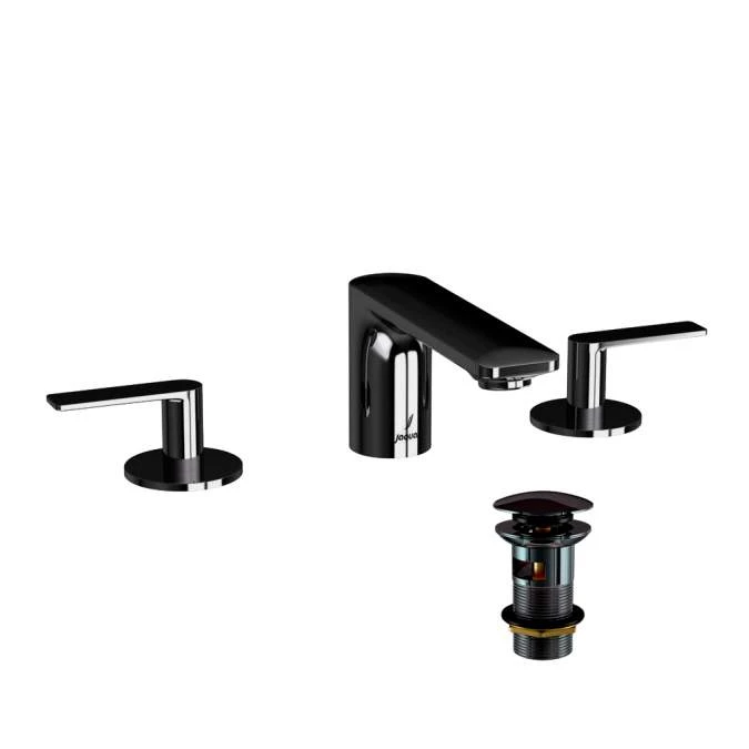 Laguna Black Chrome 3 Hole Lever Basin Mixer Including Click Clack Waste by Jaquar