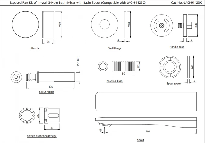 Laguna Chrome Wall Mounted Basin Mixer Specifications: