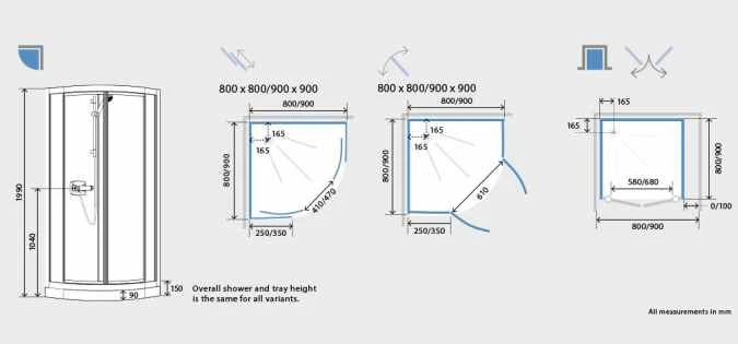 Kinedo Kineprime Glass 800mm Quadrant Sliding Door Shower Cubicle