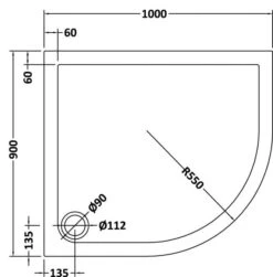 NUIE 1000 x 900 off-set quadrant shower tray features: