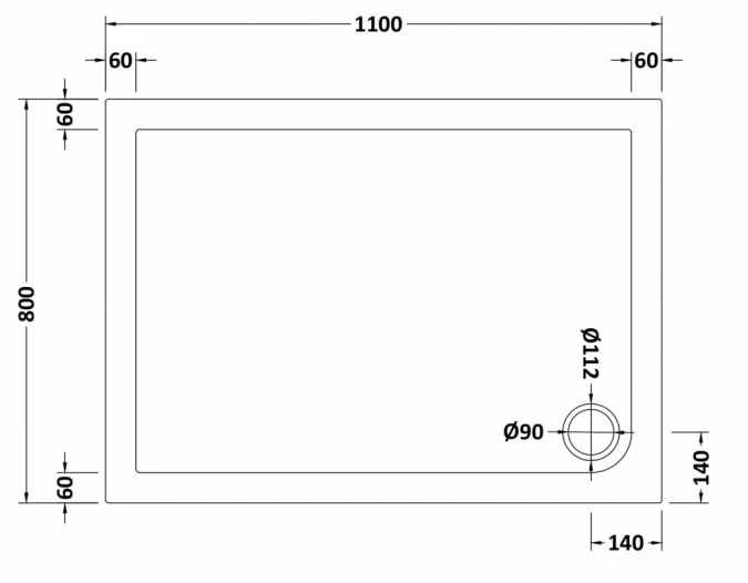 NUIE 1100 x 800 rectangle shower tray features: