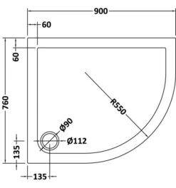 NUIE 900 x 760 off-set quadrant shower tray features: