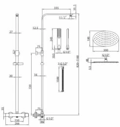 The Polo Oval Rigid Riser Shower is a dual head exposed bar mixer shower with an adjustable height ultra slim metal, not plastic, drench head and adjustable slinding hand set.