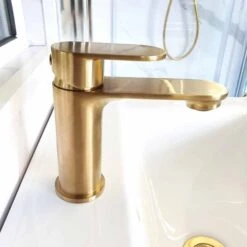Complete your basin with the stunning Ripley monobloc basin mixer tap in Brushed Brass. Featuring straight lines and rounded edges, this basin tap will look that part in any modern bathroom, ensuite or WC.