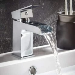Scudo best-selling Victoria taps will add a touch of luxury to your bathroom. The open spout waterfall design is extremely classy with angular tap lever.