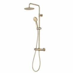 New brush Brass finishes features warm tones unlike other brashed brass showers, the Spey has a lighter touch.