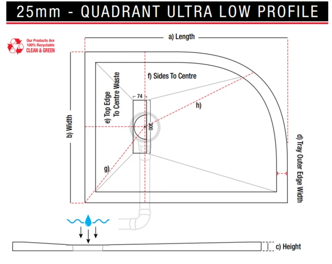 Unique to the TrayMate TM25 Linear Range is its smart water capture technology which allows it to draw water from the compact waste at up to 30 litres per minute. The TM25 Linear Shower Tray is a breakthrough in shower tray design, offering the modern look of a wetroom for the entire family without the associated cost and fitting challenges that usually come with wetroom installations. The TM25 Quadrant Shower Tray is fitted just like any other shower tray, no tanking or waterproofing is required.