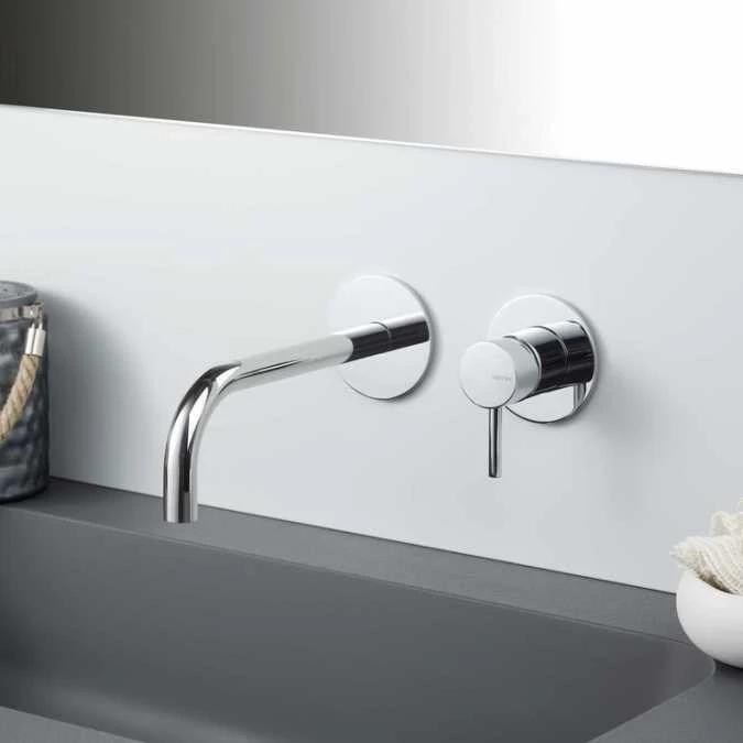 The Vema Maira Chrome Wall Mounted Basin Mixer Tap is a high pressure wall mounted silver basin mixer. This product comes with a 3 year guarantee on valves and a 10 year guarantee on the body and finish.