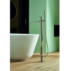 The Vema Tiber stainless steel floor standing bath / shower mixer tap. This product comes with a 3 year guarantee on valves and a 10 year guarantee on the body and finish.
