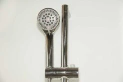 - Chrome finish hand shower and riser rail