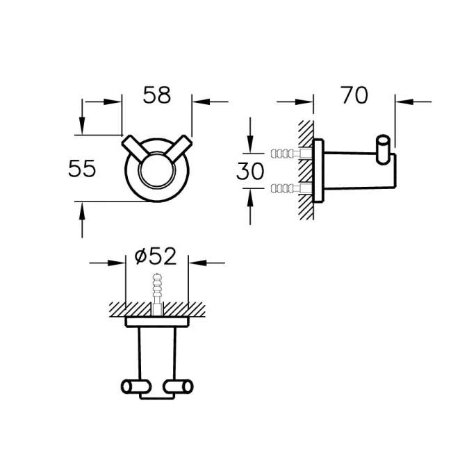 VitrA Ilia Double Robe Hook 50 x 60 x 70mm